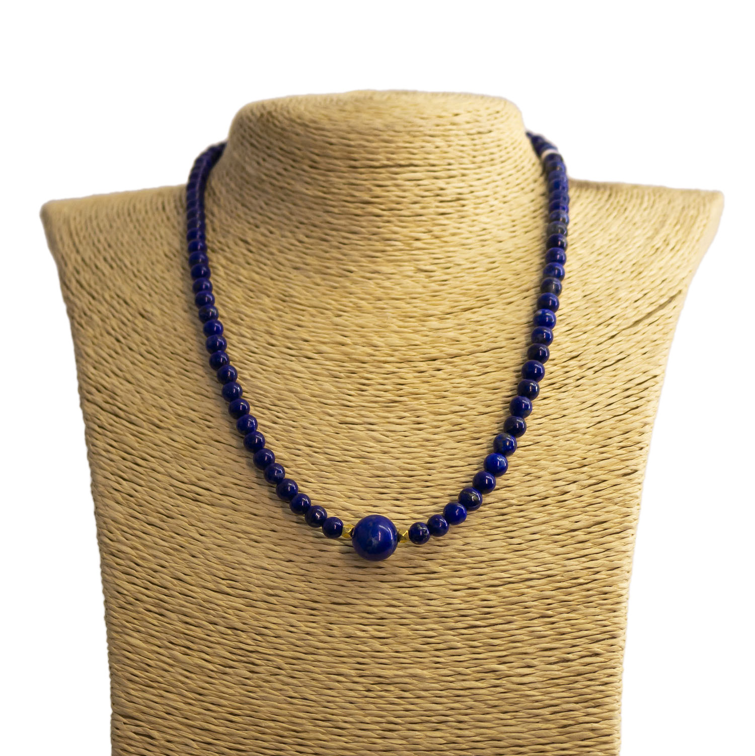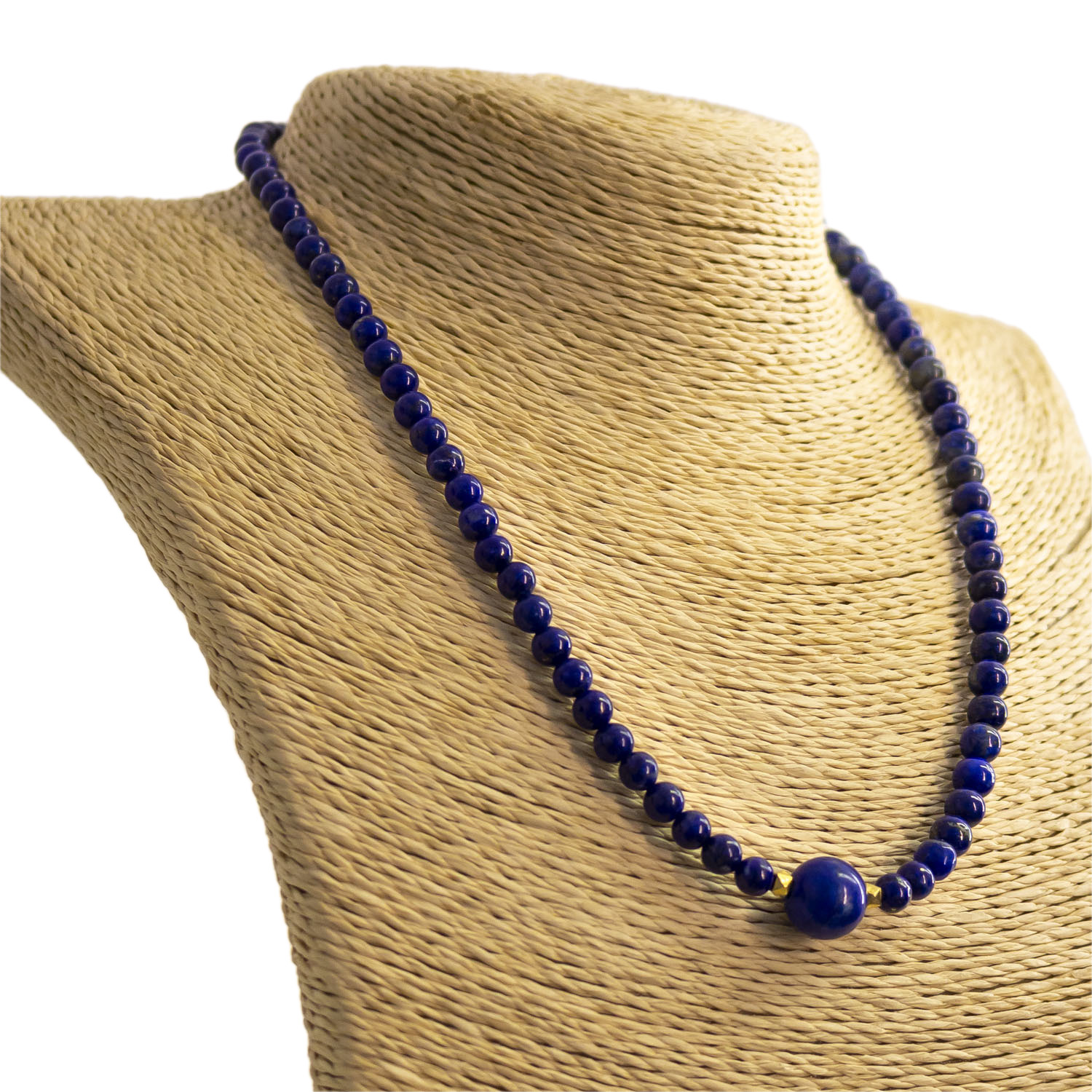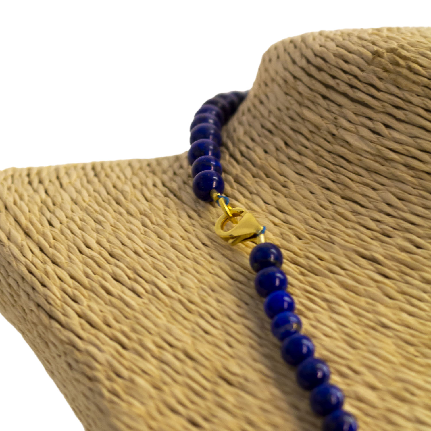 Lapislazuli ist ein blaues Gestein, das hauptsรคchlich aus Lazurit, Calcit und Pyrit besteht. Die bedeutendsten Vorkommen liegen in Afghanistan, Chile und Russland. Lapislazuli wird als Schmuckstein, Pigment und Kunstobjekt verwendet. Symbolisch steht es fรผr Weisheit, Wahrheit und spirituelle Einsicht. NAME: Lapislazuli Edelstein Halskette FARBE: Tiefblau mit Pyritglanz VERSCHLUSS: Haken